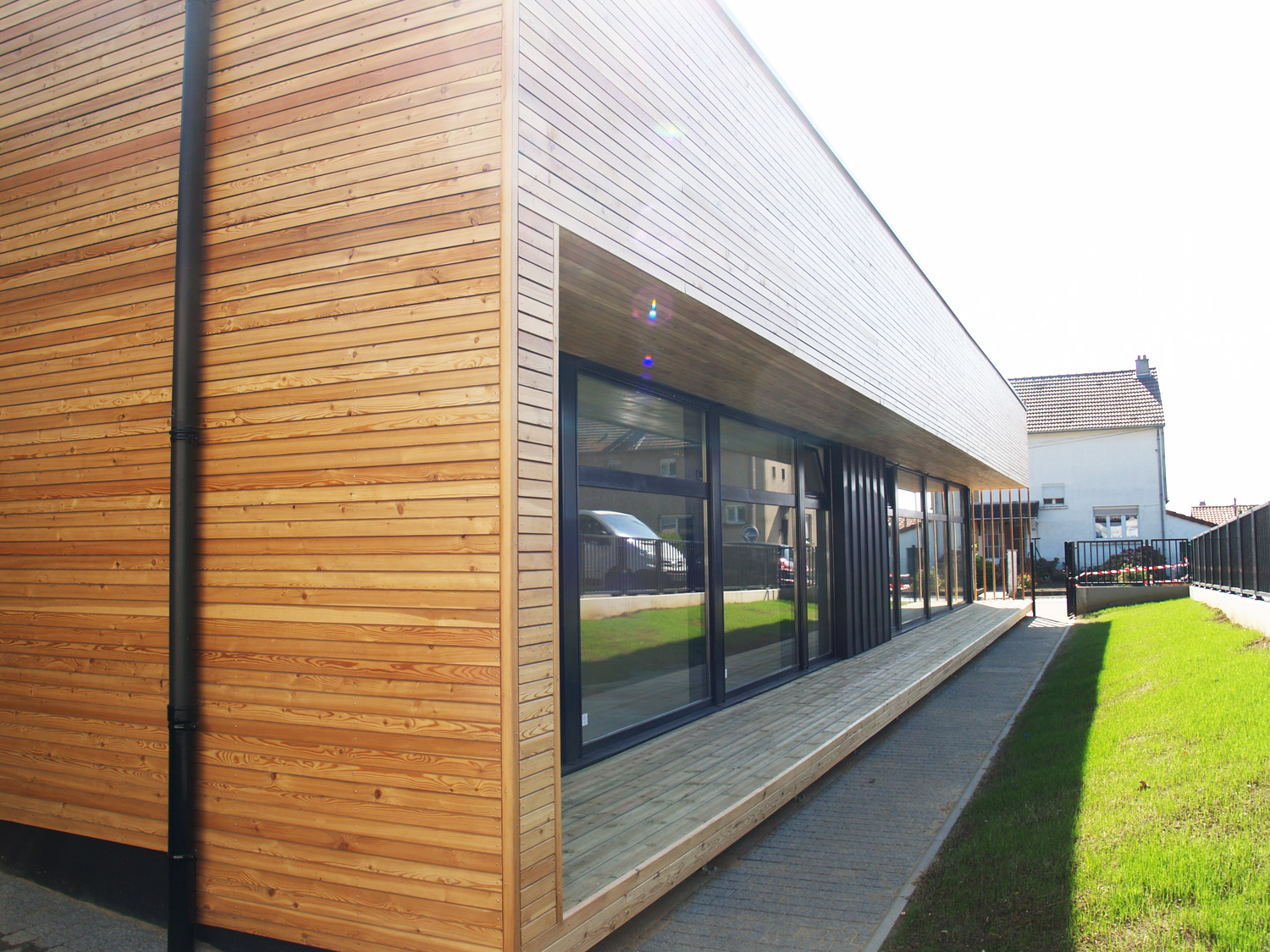 Le choix d’une structure à ossature et parement bois à été choisi afin de permettre d’obtenir une bonne performance thermique ainsi qu’une bonne intégration dans son site « végétalisé » environnant.